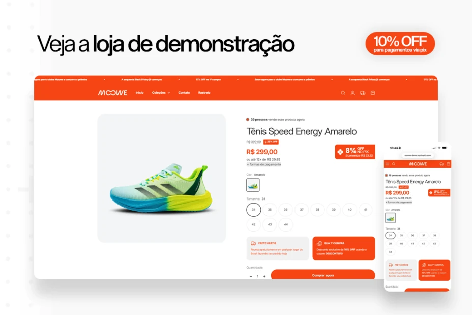 O Flux é o melhor tema para lojas genéricas (multi-nicho) que vão rodar no Brasil. Ele tem a estrutura dos grandes marketplaces e já foi validado por mais de 500 lojas.